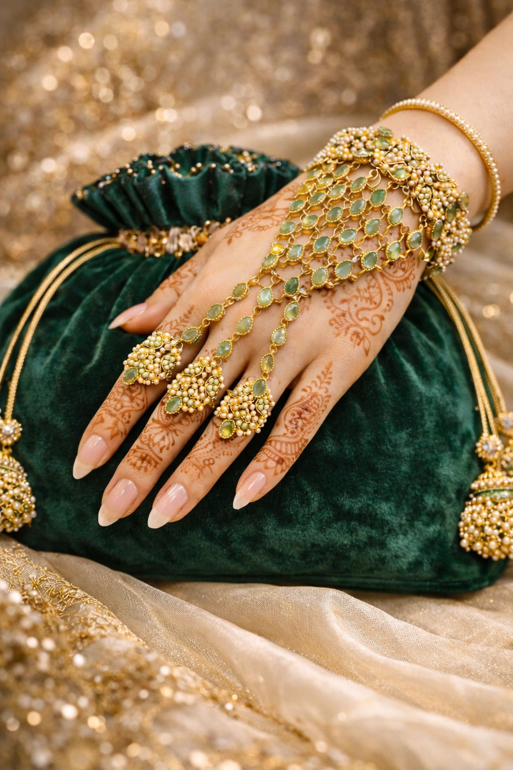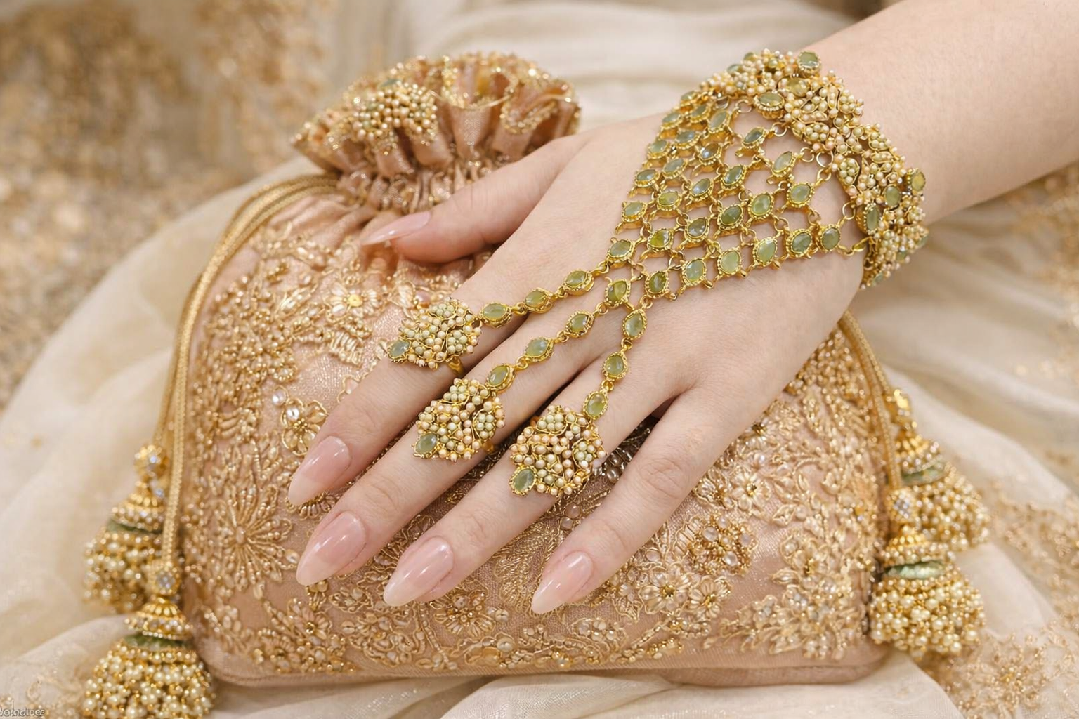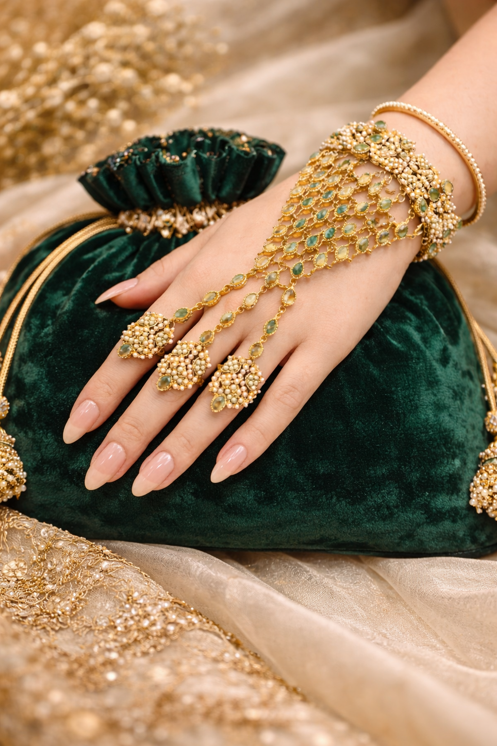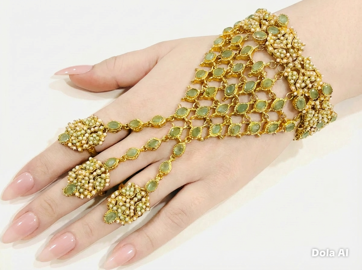 Elegant Mint Hand Jewellery That Adds A Touch Of Sophistication To Your Bridal Or Formal Look.