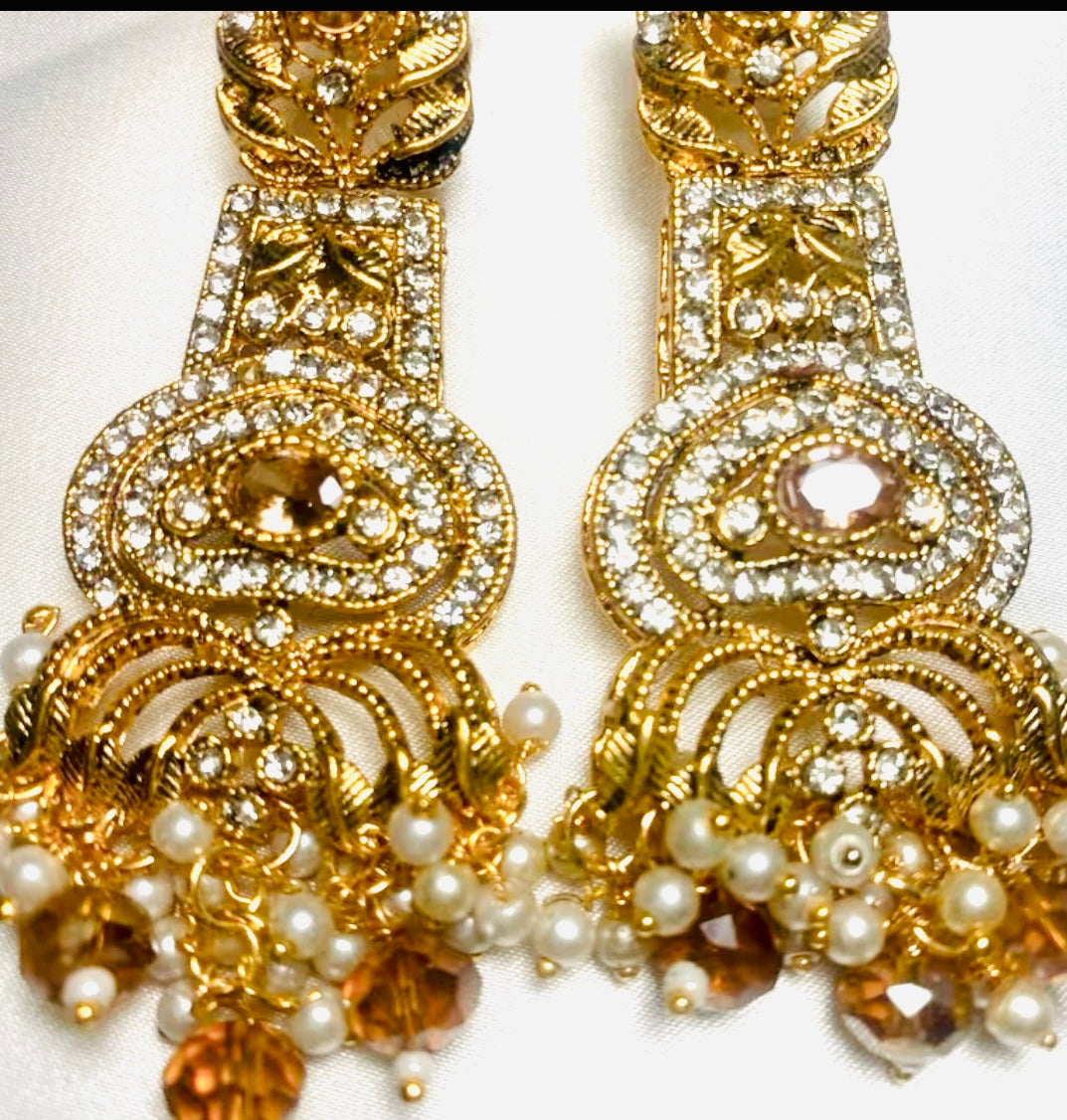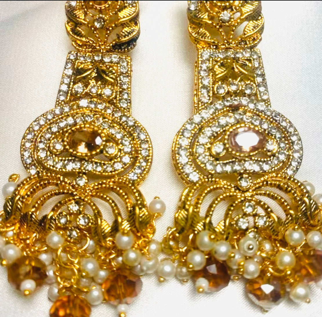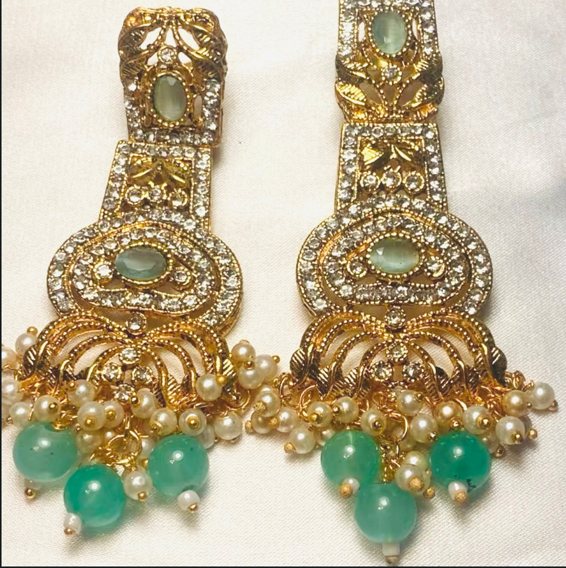 Elegant Alia Earrings Featuring Intricate Stone & Beadwork In A Luxurious Gold Finish. A Statement Piece That Adds Sophistication & Tradition To Any Ensemble.