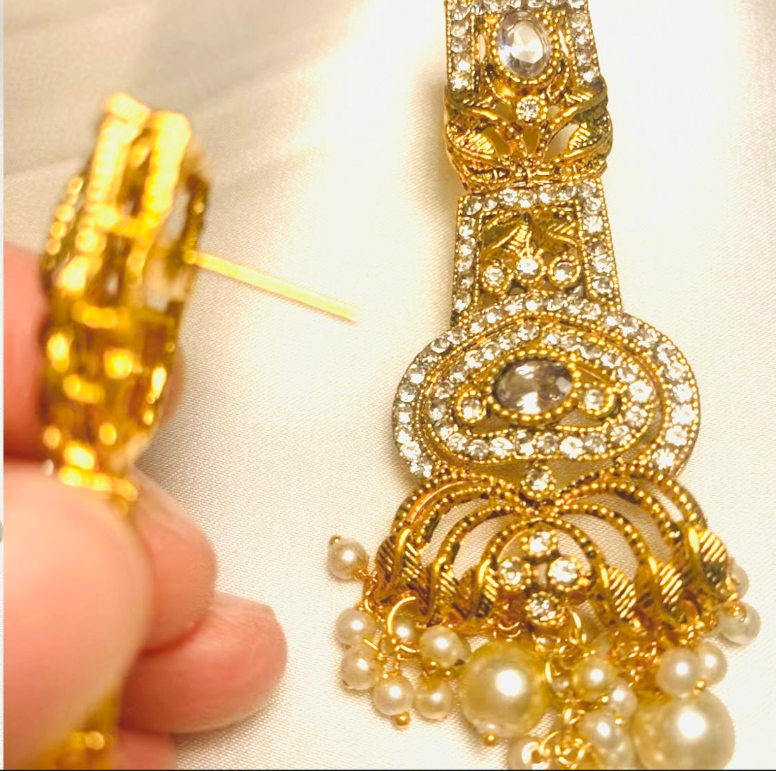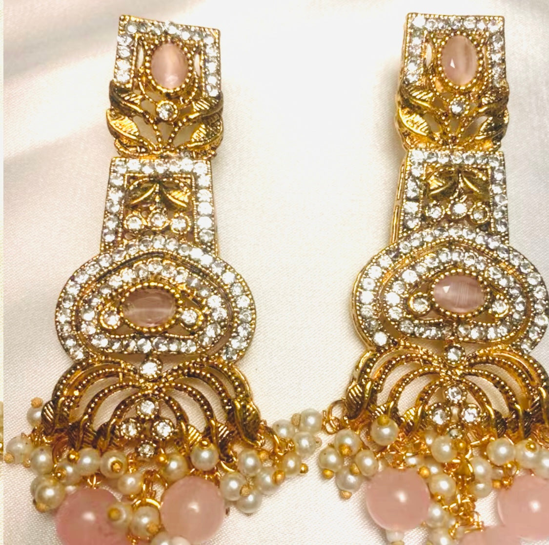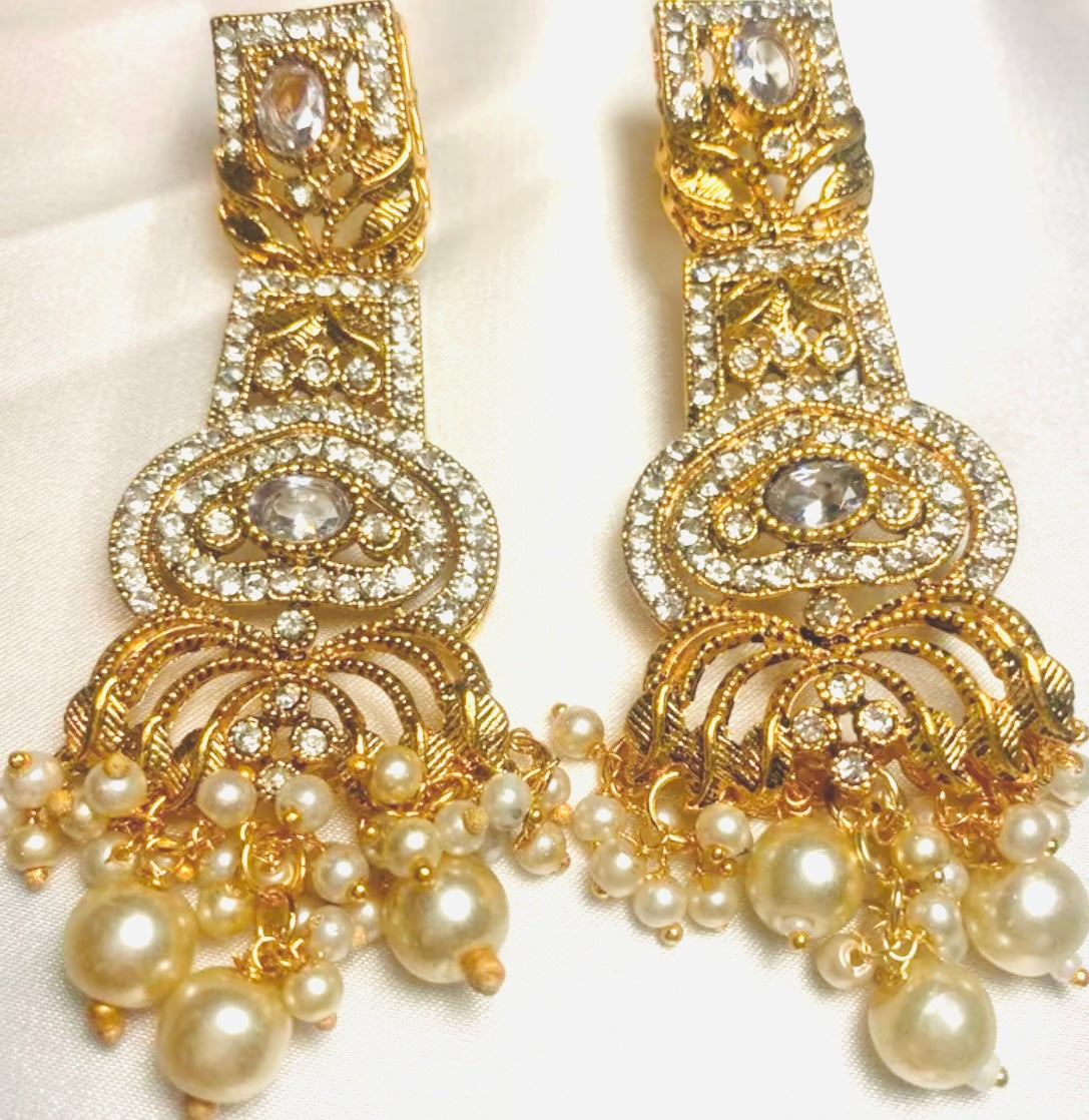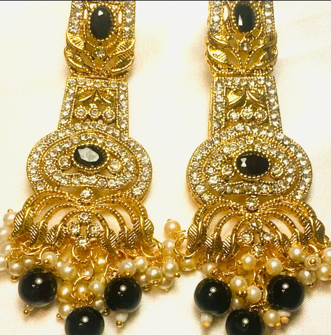 Elegant Alia Earrings Featuring Intricate Stone & Beadwork In A Luxurious Gold Finish. A Statement Piece That Adds Sophistication & Tradition To Any Ensemble.
