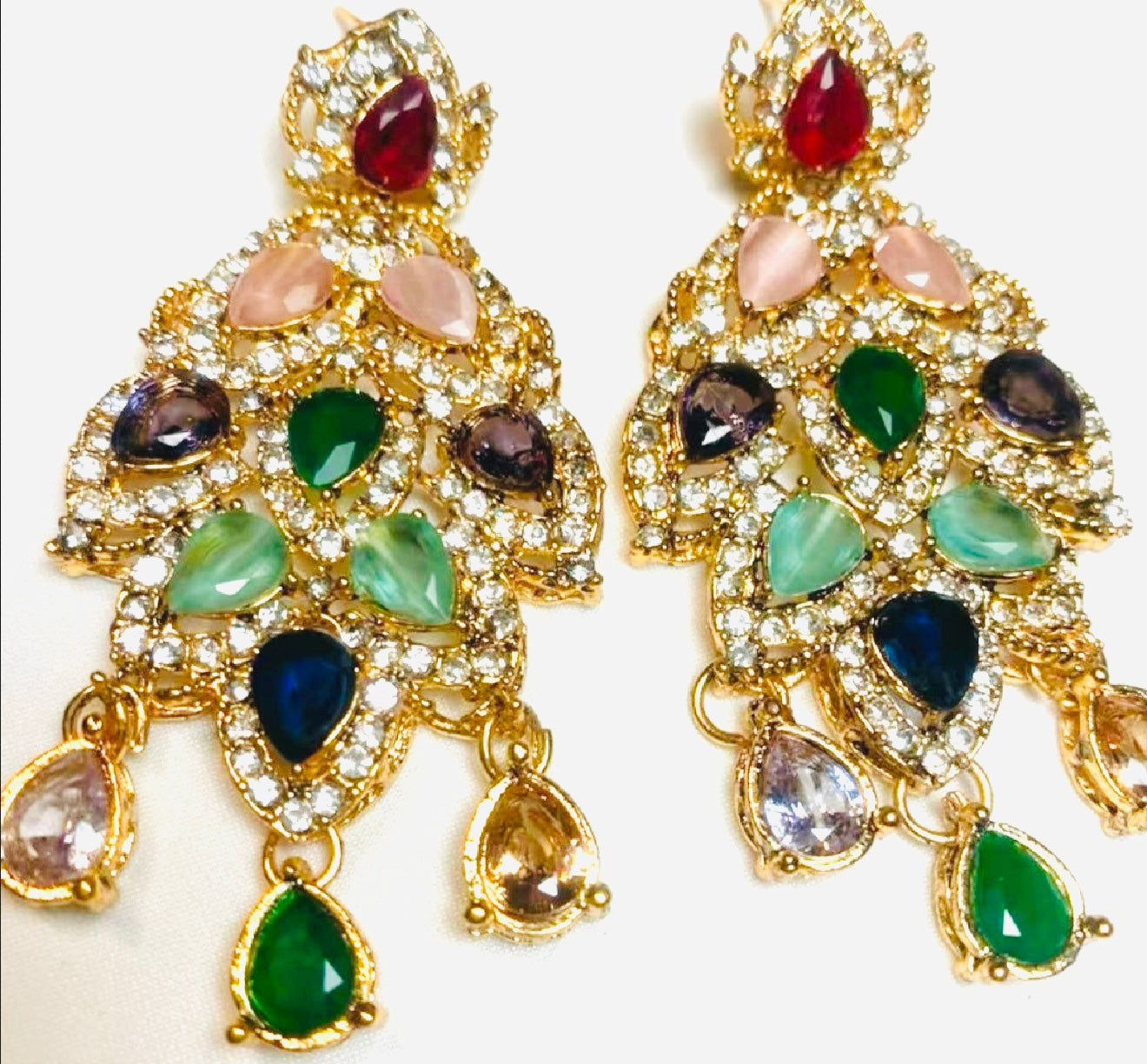 Elegant Nida Earrings Featuring Intricate Stonework In Gold Finish. A Statement Piece That Adds Sophistication & Tradition To Any Outfit