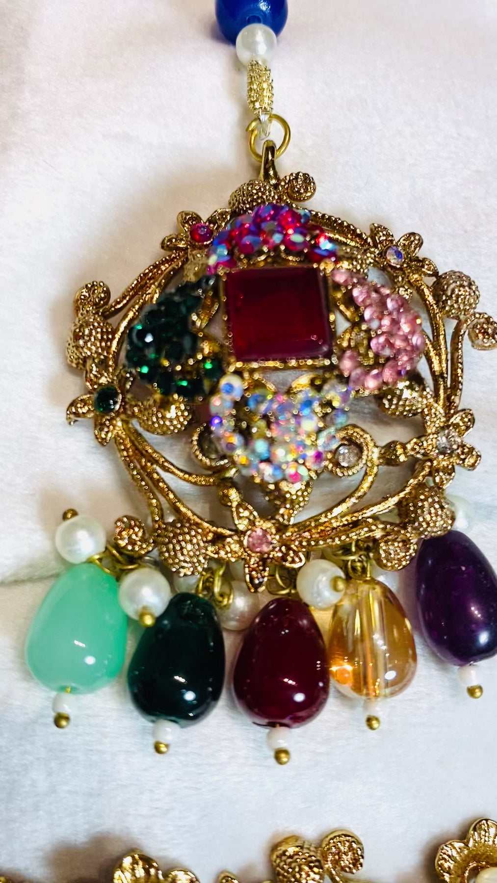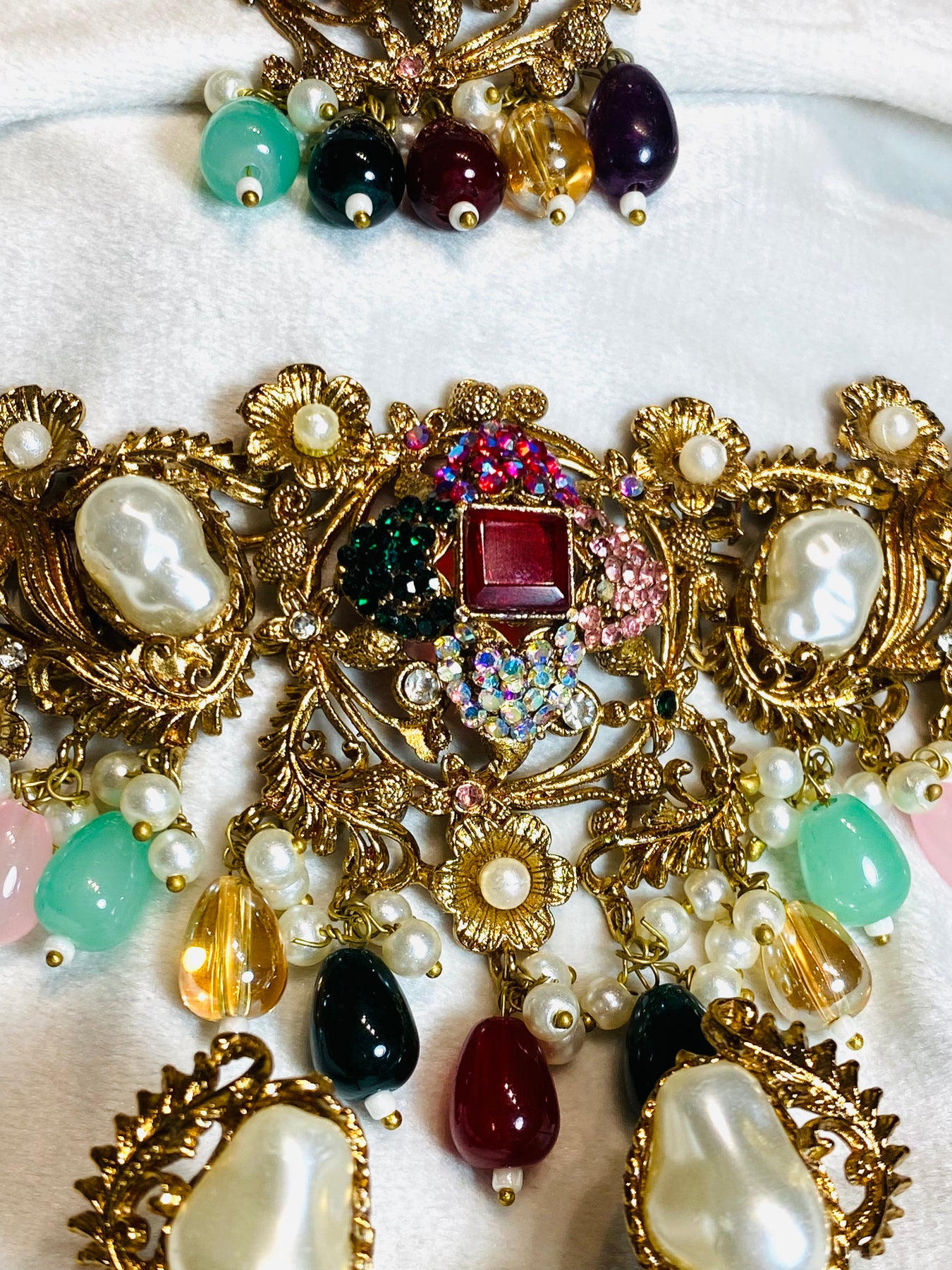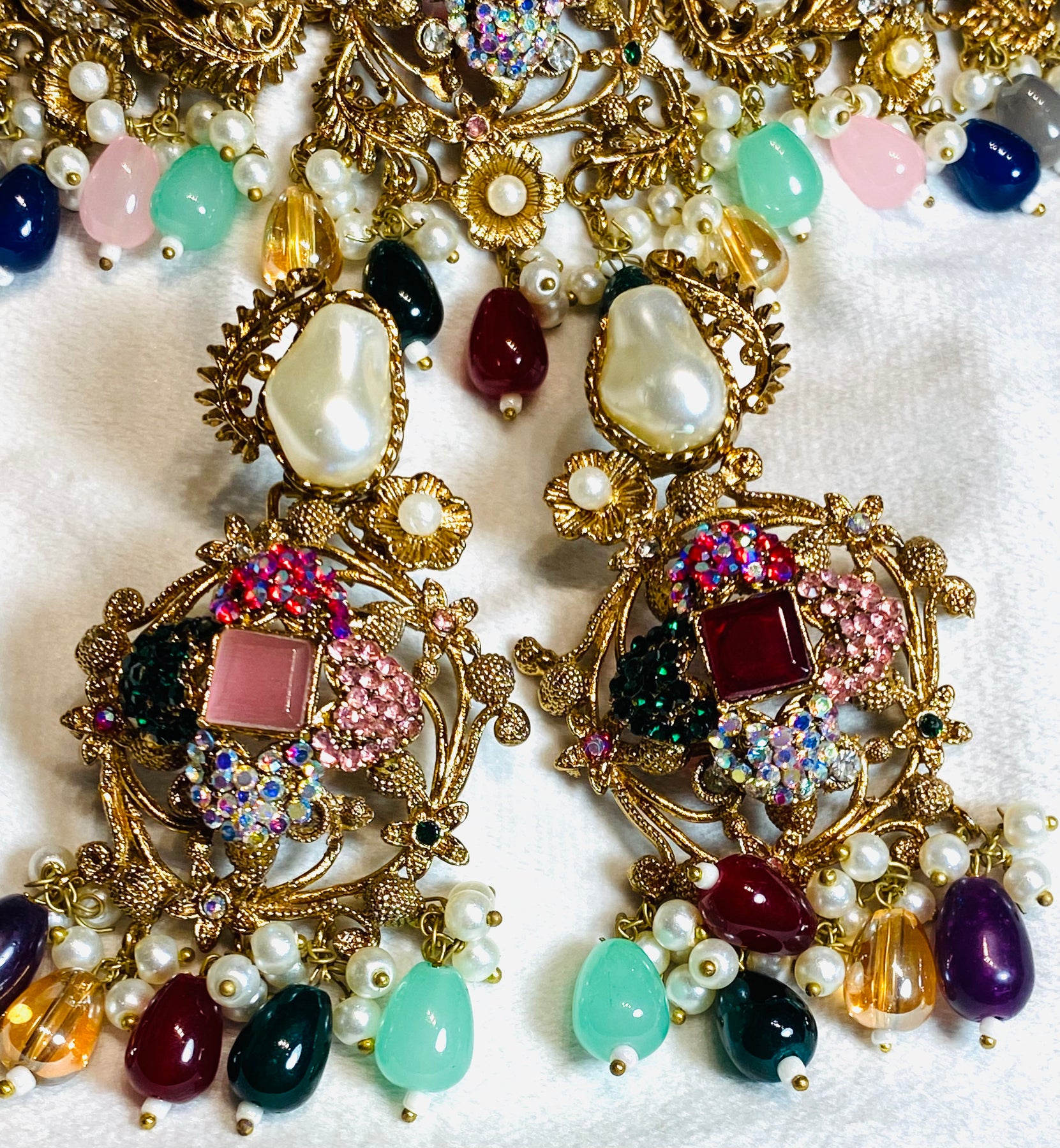Parveen Set with Necklace, Earrings & Tika with Beautiful (faux) Pearl & Beadwork Set in Filigree Design