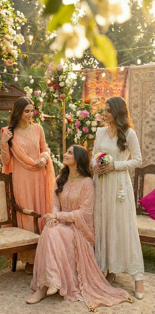 What's Included:• Embroidered Chiffon Long Dress• Matching Chiffon Dupatta• Matching Silk Trousers