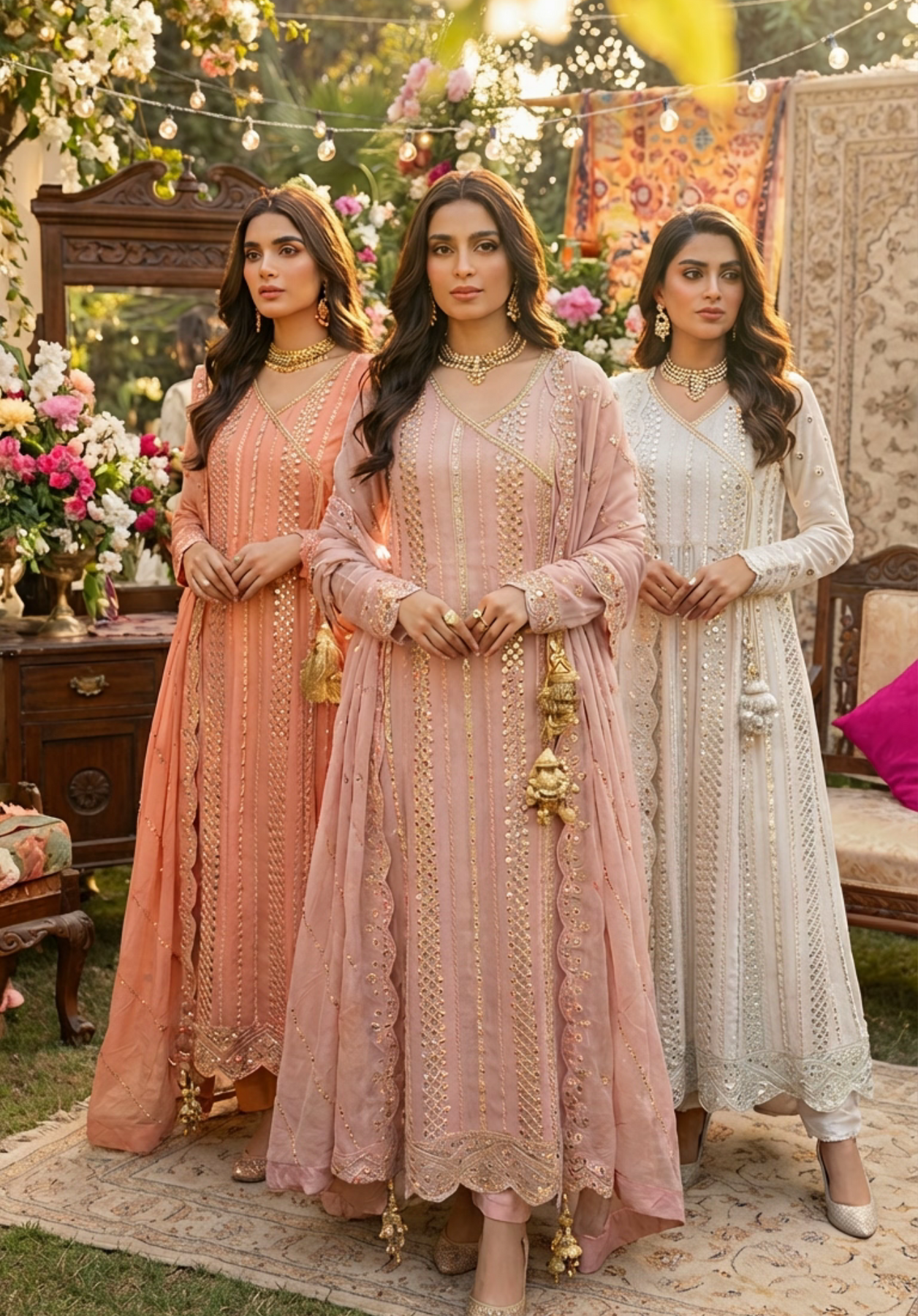 Fabric & Craft:Luxurious Chiffon With Intricate Foil & Pearl Embroidery Detailing, Finished By Hand To The Highest Standards.