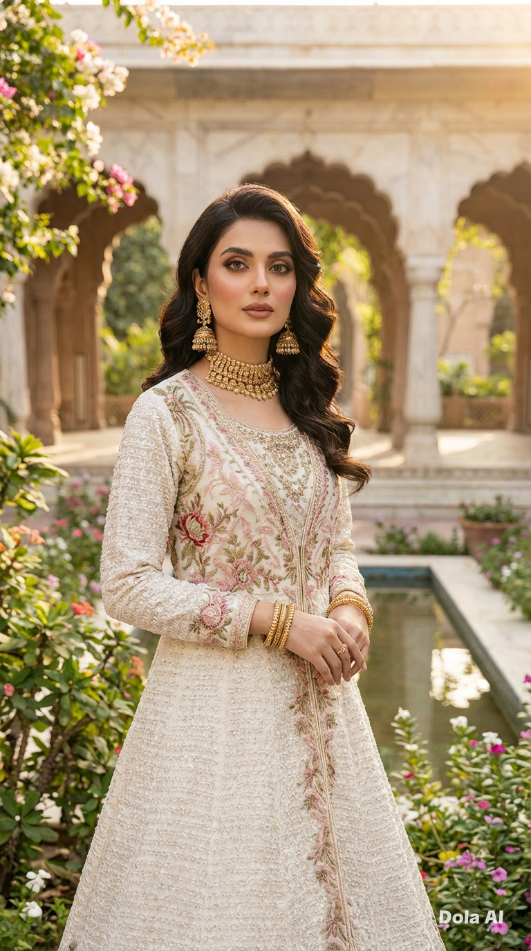 Graceful Flared Silhouette With Exquisite Flower Detailed Embroidery Creating A Romantic And Sophisticated.