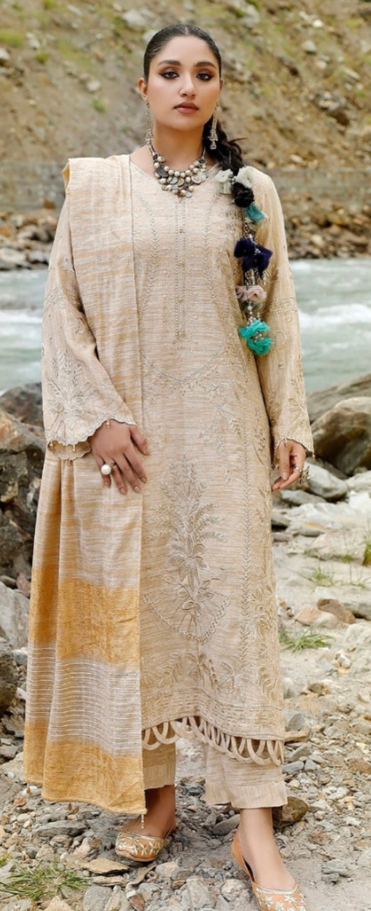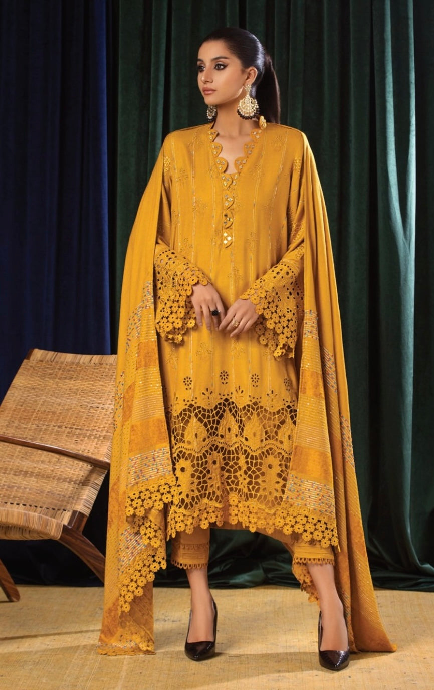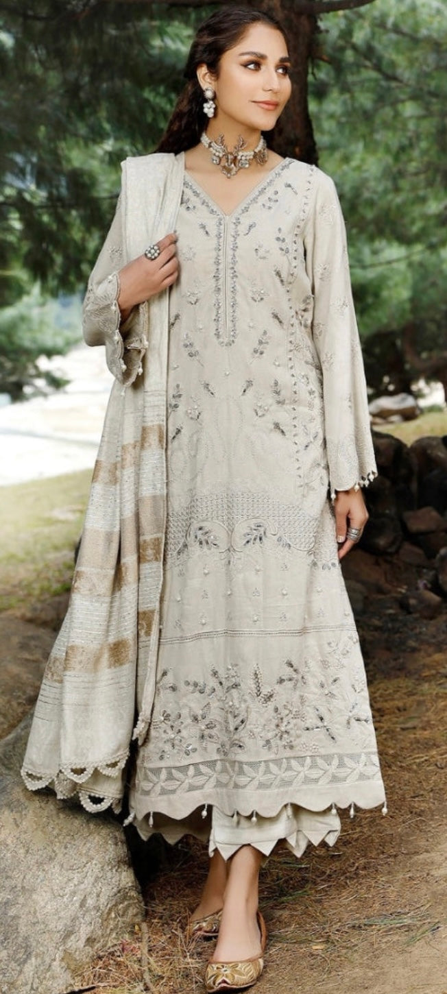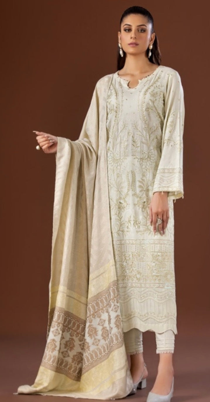Tehzeeb Winter Unstitched Leather Peach Fabric