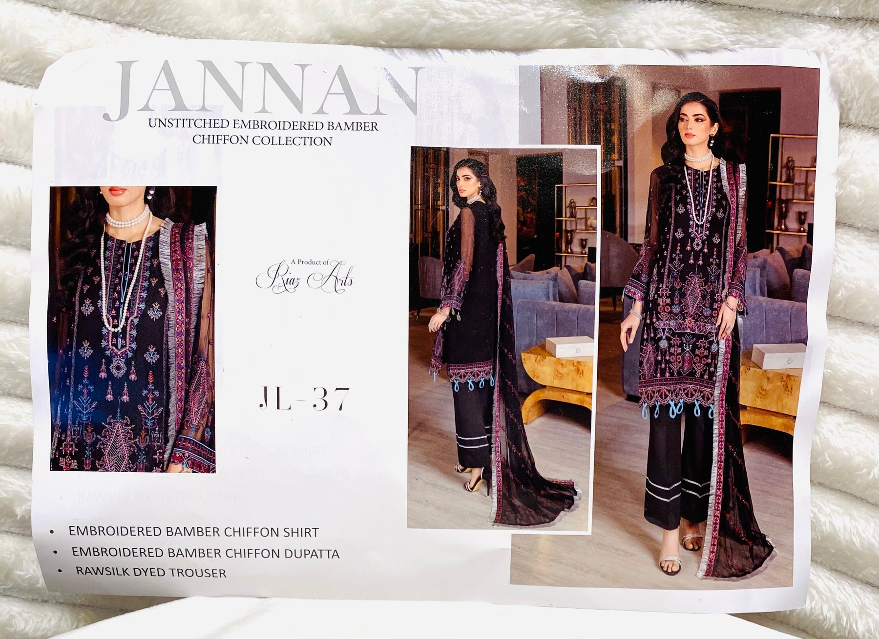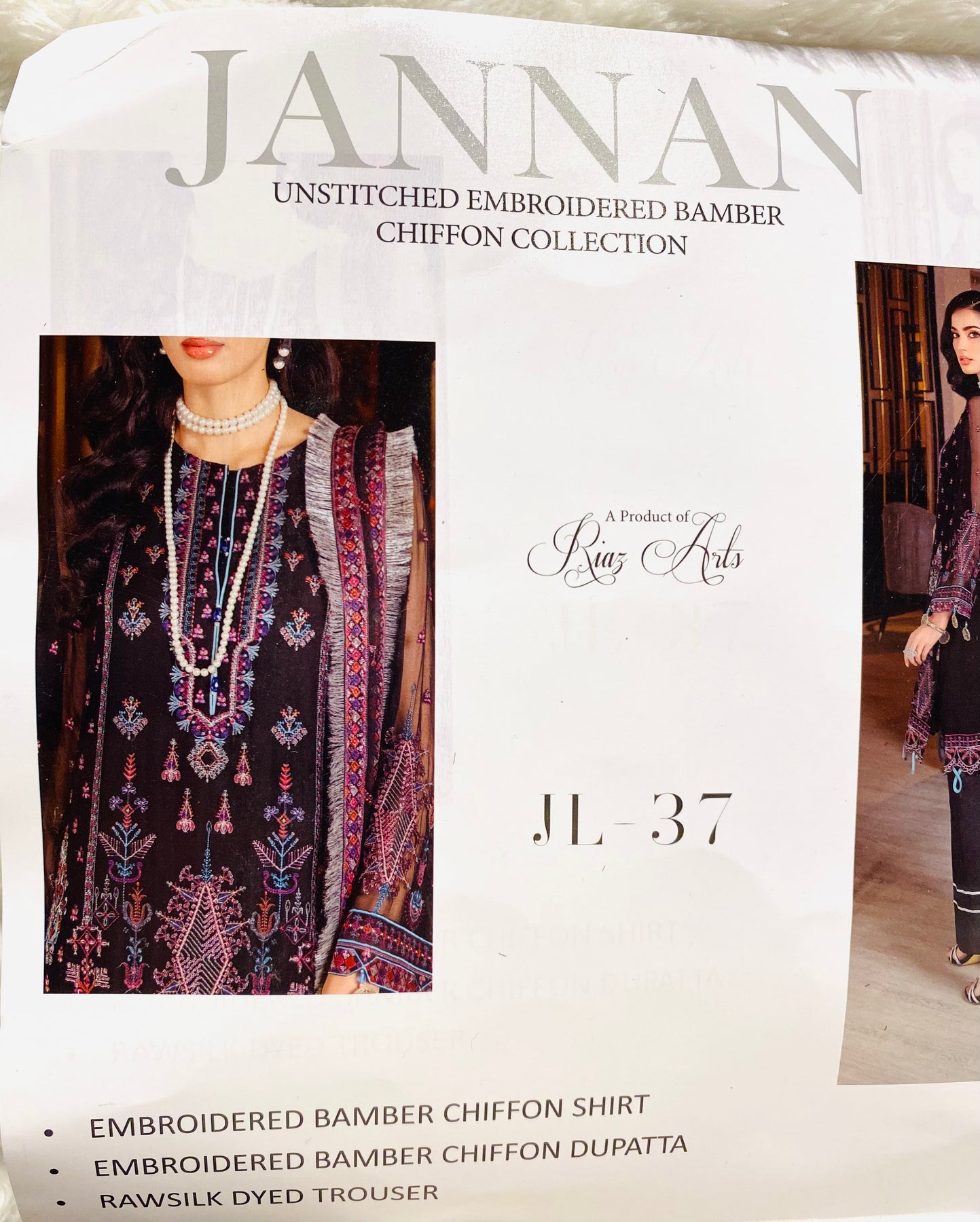 Unstitched JANNAN Chiffon Suit by Riyaz ArtsColour- Black