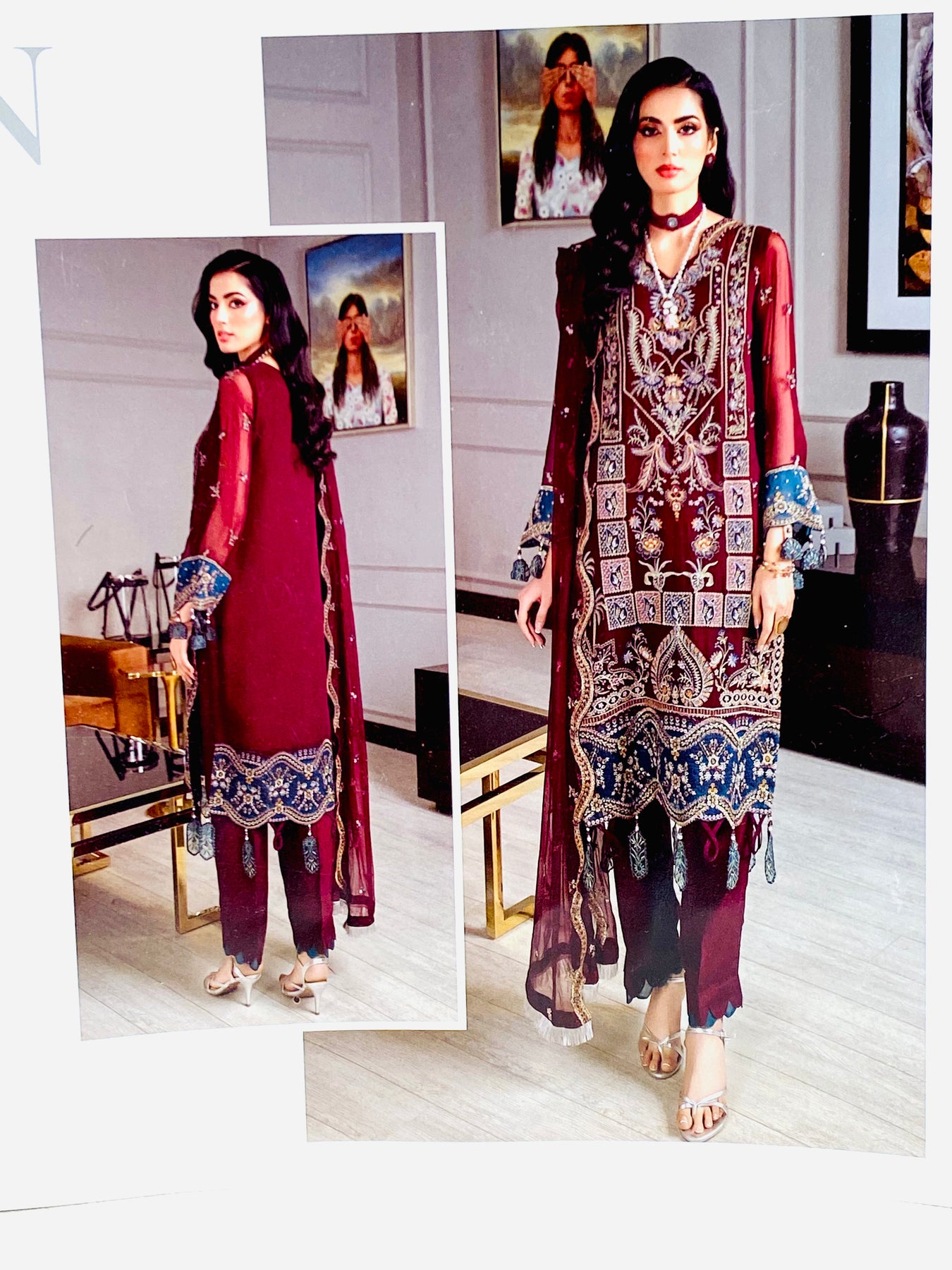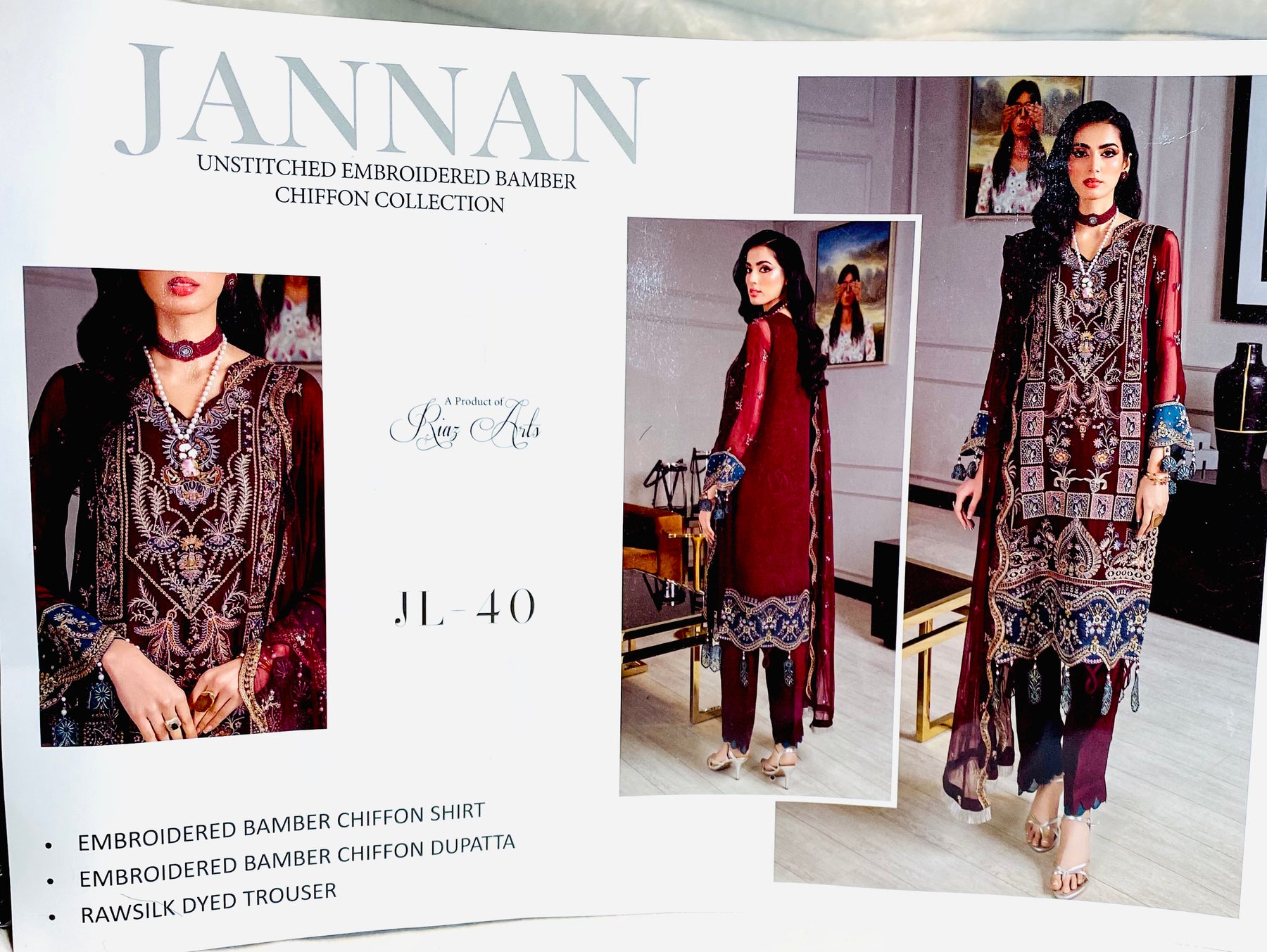 JANNAN Unstitched Suit Plum. By Riyaz Arts.