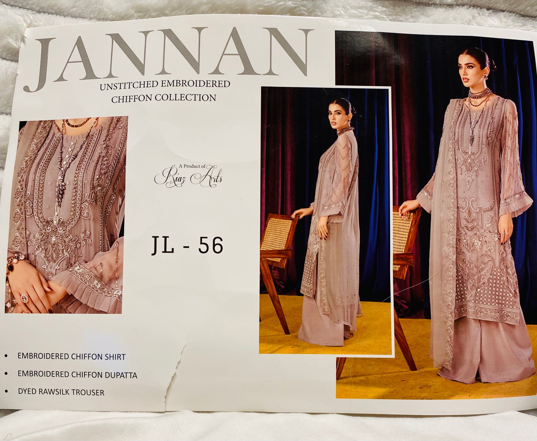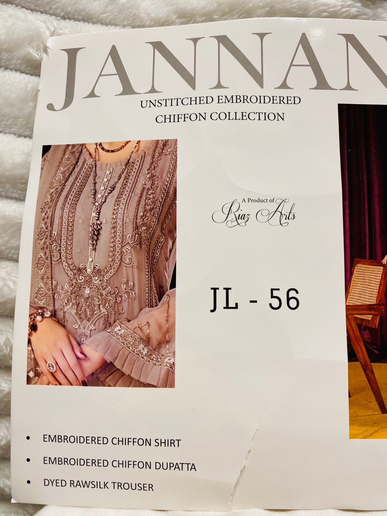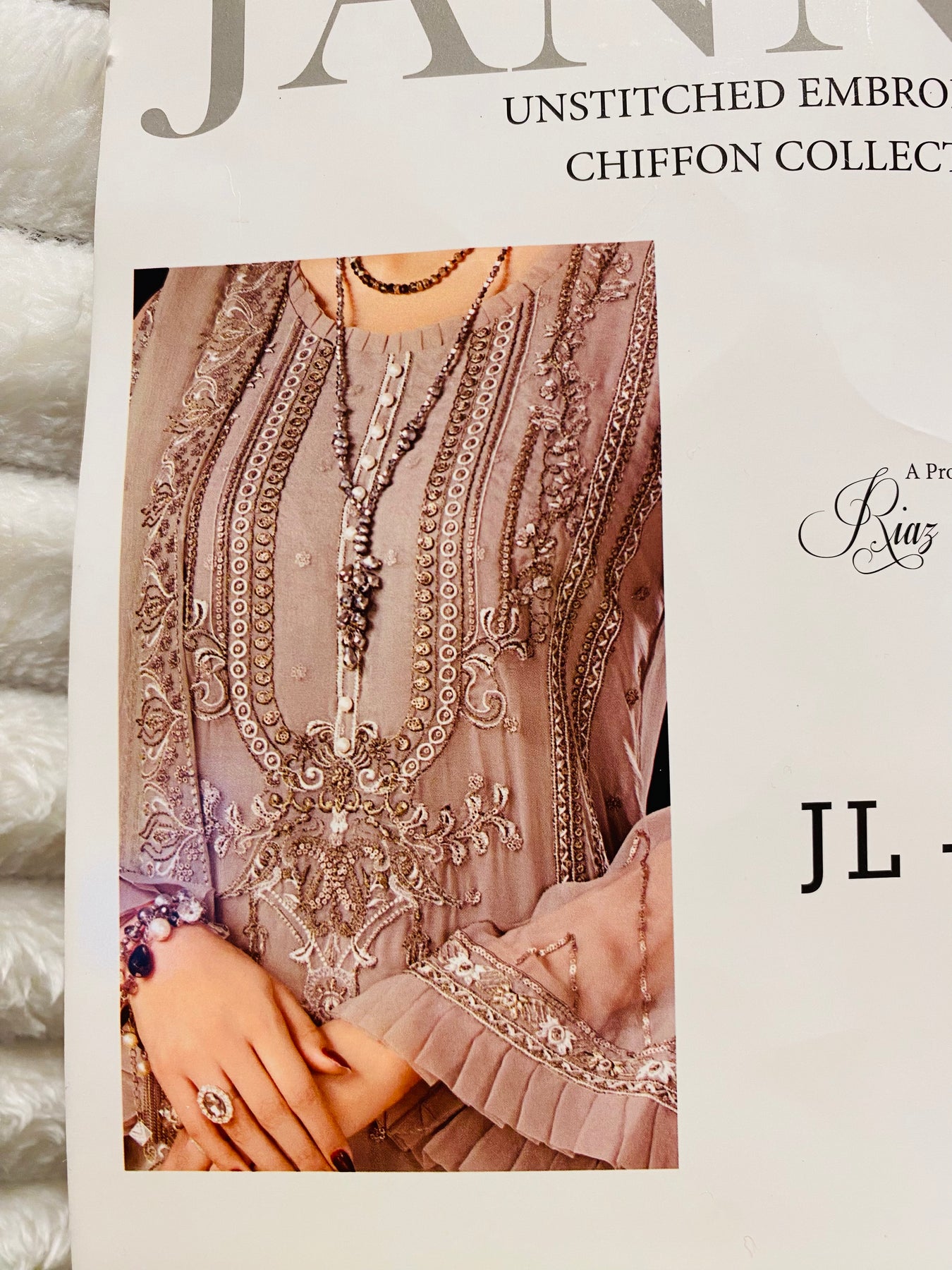 Unstitched Jannan Embroidered Chiffon Suit by Riyaz Arts