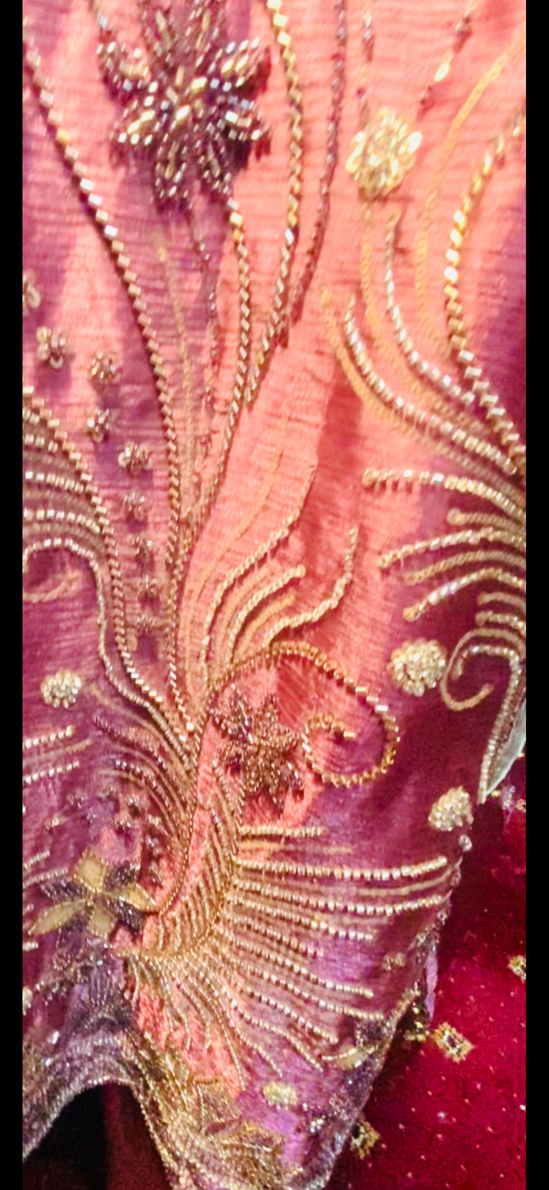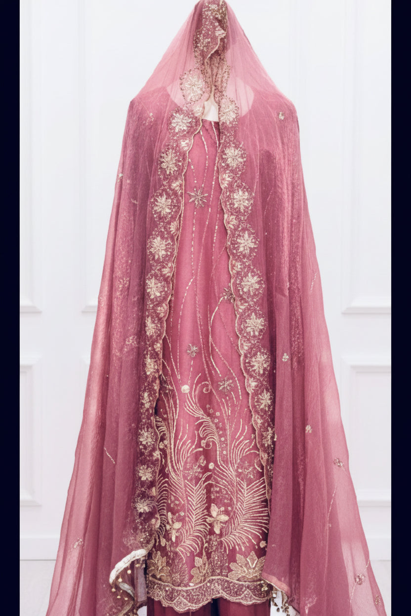 A Beautiful 3 Piece Cutdana Embroidered Outfit with Matching Dupatta & Plain Trousers