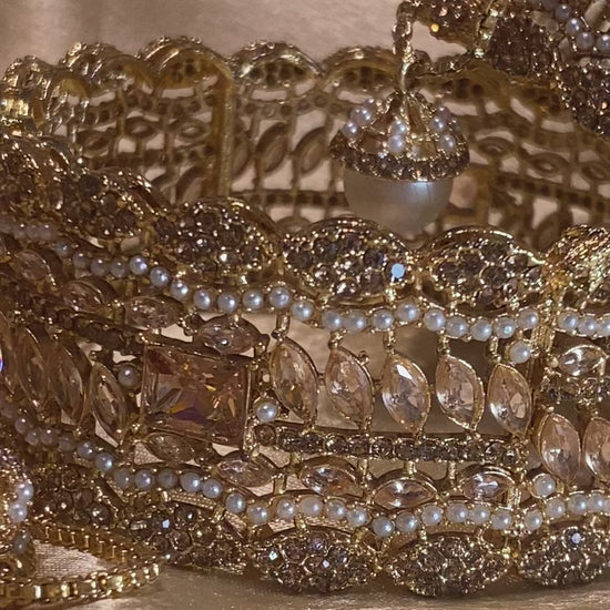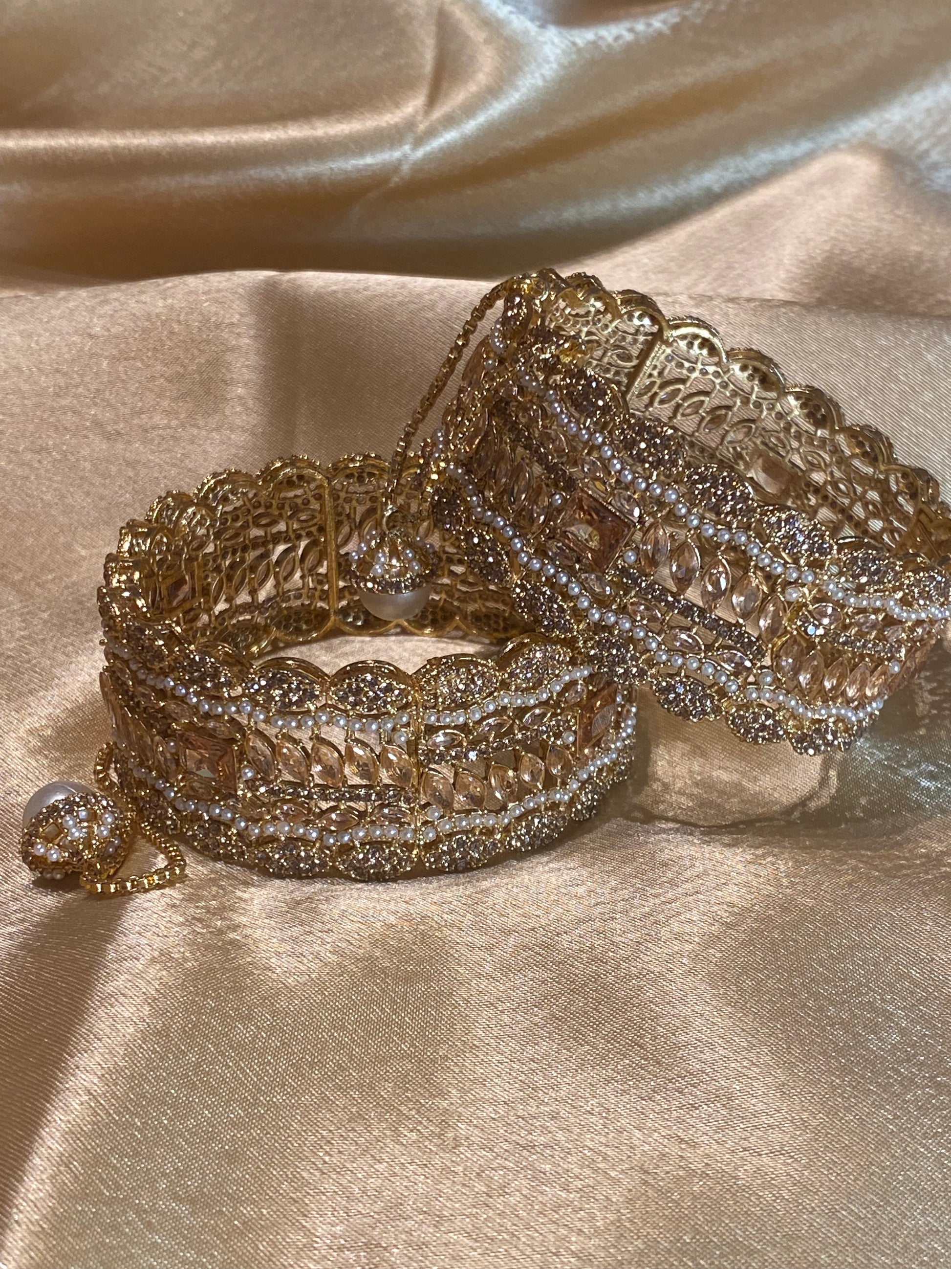 Champagne Square & White Zircon Stonework With Pearl Bangle.Set of 2