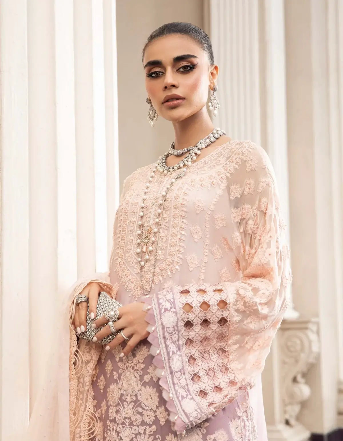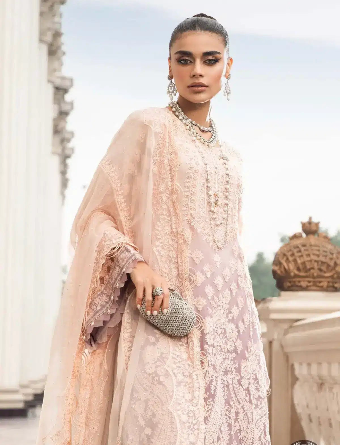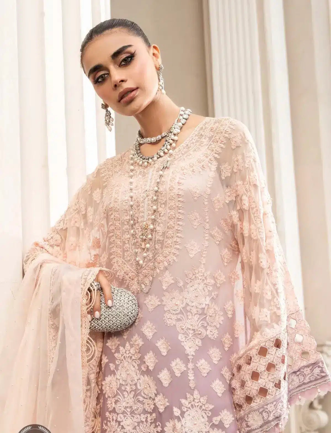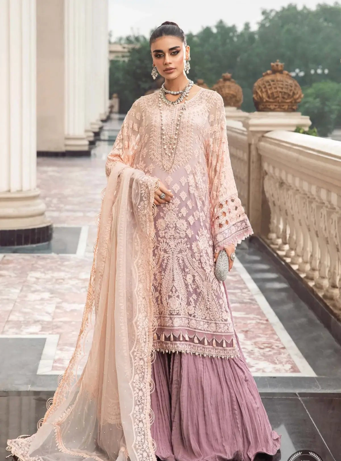 Beautiful Maria B Inspired 3 Piece Chiffon Outfit with Crushed Silk Sharara