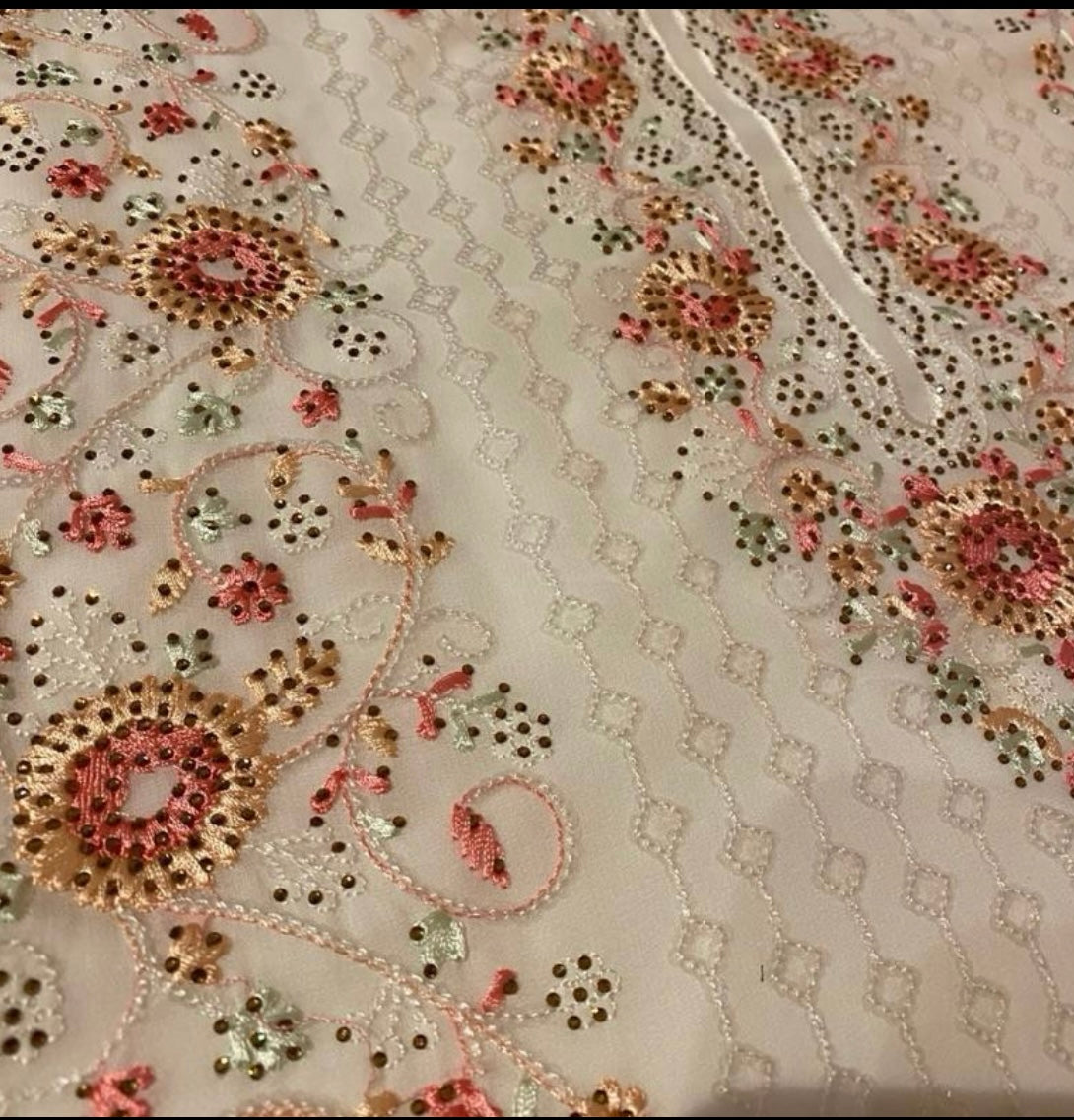 Beautiful 3 Piece Chiffon Suit With Fully Lined & Embroidered Kameez with Stonework & Matching Chiffon Dupatta